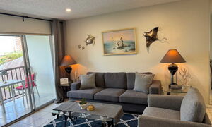 Wohnungsgröße 100 qm, 2 Badezimmer, 2 Schlafzimmer, moderne Küche, Balkon mit seitlichem Meerblick, 5.OG, hauseigener Parkplatz, Pool und Shuffle Board Anlage.