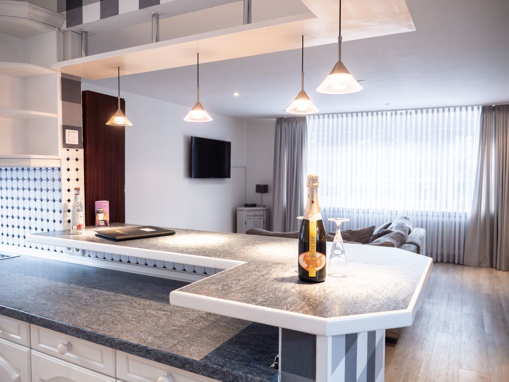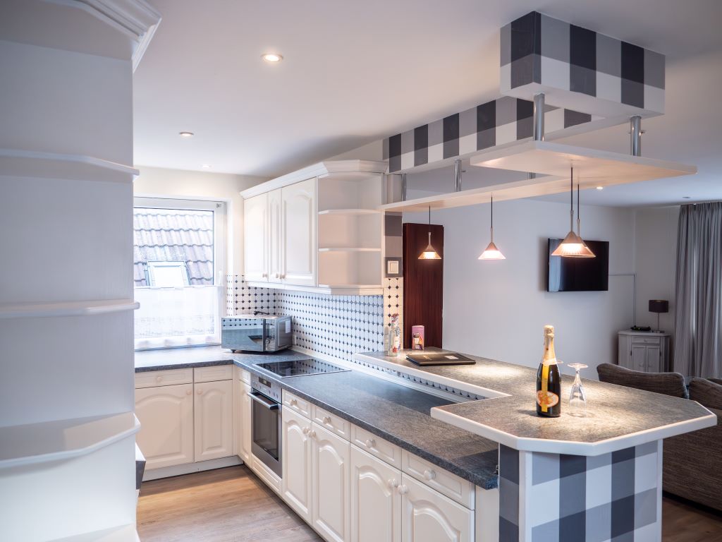 Das Apartment selbst lässt keine Wünsche offen. Mit einer voll ausgestatteten Küche und Teestation sowie einer gemütlichen Einrichtung, fühlt man sich hier wie zu Hause. Perfekt für einen Aufenthalt in Husum. Und dank der tollen Lage gegenüber vom Hotel Osterkrug, stehen Ihnen Hotelleistungen wie das Frühstücksbuffet, die Bar, Hotelparkplatz 7,00 € Gebühr pro Tag, sowie Sitzgelegenheiten auf der Hotelterrasse zur Verfügung, die Sie mitbenutzen können. So wird Ihr Aufenthalt noch angenehmer.