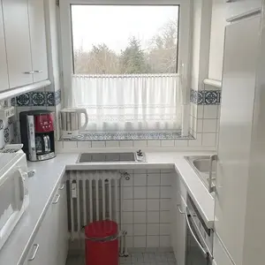 - Komplette Küche (u.a. Geschirrspüler, Mikrowelle, Kaffeemaschine, Dunstabzug)